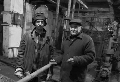 - Мы следим за каждым градусом на подаче тепла, - продолжает начальник котельной Петр Куимов, - соблюдение технологических графиков – наше железное правило. Похолодало на улице, машинисты котлов сразу же поднимают температуру на выходе. Да и наши руководители в лице «Хакаресводоканала» спуску не дадут. Правила установлены довольно жесткие, особенно в техническом обслуживании. Сейчас у коллектива практически нет проблем с углем и электроэнергией. На первый план вышла технически грамотная эксплуатация котлов и оборудования. Не так давно здесь сделали более удобную площадку на угольном складе, что помогает в экономии средств и горючего. Туимские специалисты, а у многих в коллективе богатейший опыт, помогают сегодня абаканцам правильно рассчитывать тарифы на одну гика – калорию тепла, на воду, на технические стоки и так далее. Одна из новых задач – толковая организация абонентской службы и работы созданного ООО «Управляющая компания ЖЭУ – 3» в поселке. С каждым пользователем, домохозяином или квартировладельцем, необходимо заключать договора, а в конечном итоге решить проблему платежей за жилищно – коммунальные услуги. Это пока одно из самых больных мест. Счет долгов от населения идет на миллионы рублей, десятки и сотни дел находятся в судебном производстве. Плюс ко всему «задает загадки» руководство Туимского завода по обработке цветных металлов, требуя незамедлительного подключения к теплоснабжению, не гарантируя при этом платежей. А на участке теплотрассы потери могут быть равными объемам подачи тепла. Вопрос пытаются решить с помощью вышестоящих инстанций, но пока обоюдовыгодный выход не найден. Директор филиала Аркадий Краснухин в один голос с Куимовым называет лидеров производства. Среди лучших слесарь – бригадир по ремонту теплосетей Николай Торин (на снимке справа) и электро - газосварщик Дмитрий Гоканен. На топливоподаче отмечают, как одну из беспокойных и принцпиальных работниц, Нину Душинину (на снимке). В том же ряду передовиков старший машинист котлов Андрей Жариков, мастер Вячеслав Куртияков, водитель Григорий Мамонтов и многие другие. Зима еще впереди, и какие сюрпризы она может преподнести, неизвестно. Однако у коллектива есть запас прочности для решения многочисленных рабочих задач.