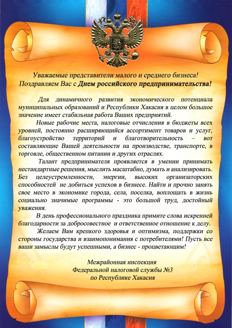 Главная / Межрайонная ИФНС России №3 / Объявления / С днем российского предпринимательства.