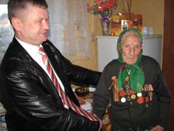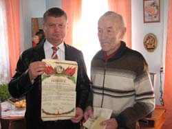 «Солдаты Победы. Абакан - 2010». Лежащая передо мной книга содержит краткую, скупую характеристику на каждого ветерана Великой Отечественной войны, призванного или живущего в Хакасии. Не найдет в ней читатель описания подвигов и пережитого горя, но от того не становиться она менее страшной - уж очень много в ней имен четырнадцатилетних детей взявших в руки оружие, парней и девушек, вставших со студенческой скамьи, мужчин и женщин, оставивших родной дом, детей… Вся страна вступила в войну: взяла в руки оружие, встала к станкам. Из громадного перечня Ширинских ветеранов в живых осталось только пятьдесят четыре, победителя, в их числе Мария Афанасьевна Кузнецова, Мария Илларионовна Драко (Чачина), Михаил Ануфриевич Усенко, Николай Михайлович Халяпкин и Григорий Иннокентьевич Усков. 9 мая 1945 года погода в Шира стояла по-весеннему, по-победному, яркая, солнечная, теплая. На календаре 1 мая 2011 года, погода точь-в-точь, как и шестьдесят шесть лет назад, да и настроение приподнятое, предпраздничное: едем чествовать ветеранов. В состав делегации входили: глава района Сергей Зайцев, председатель районного Совета депутатов Николай Абдин, управляющий делами администрации МО Ширинский район В.А. Гетманенко, председатель районного Совета ветеранов (пенсионеров) войны, труда, Вооруженных сил и правоохранительных органов Валерий Порхун и представитель КПРФ Константин Зверков. В списке у главы района пять адресатов, в багажнике ровно столько же подарков, а сколько тепла в душе, благодарности и уважения к победителям не перечесть. Первая остановка у дома Марии Афанасьевны Кузнецовой, воевавшей в составе Брянского фронта, в партизанском отраде. Война жестока, партизанская война жестока вдвойне - война без правил, без жалости, война на уничтожение. Этот ад прошла в Белорусских лесах Мария Афанасьевна, прошла и выжила. Ее ратный подвиг отмечен медалью «За победу над Германией». Четыре года в составе 1-го Дальневосточного фронта воевала Мария Илларионовна Драко (Чачина). Трудно поверить, что эта маленькая, хрупкая женщина, с очень добрыми, по-детски наивными глазами воевала. И не просто воевала, а награждена медалями: «За боевые заслуги», «За победу над Японией». Михаила Ануфриевича Усенко читатель районной газеты часто встречал на страницах «ШВ», его воспоминания в обработке покойного Александра Петровича Турова, всегда вызывали неподдельный интерес. Широкая грудь фронтовика усыпана наградами, среди которых ордена «Красной звезды» (высшая солдатская награда) и Отечественной войны II степени, медали «За боевые заслуги», «За победу над Германией». Поделился сержант 19 танкового корпуса 4-го Украинского фронта с гостями своими планами - прожить еще девять лет. На наш взгляд - слишком мало, живите, Михаил Ануфриевич, дольше, живите и передавайте потомкам правду о Великой войне.