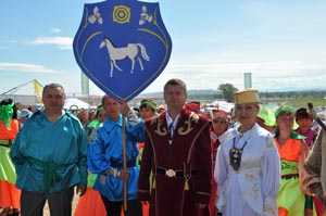 Широко раскинула свои земли Республика Хакасия! Высоко пролетают орлы над бескрайними степями, а по ним с достоинством идет человек и гордится своей малой родиной! Наверное такими словами можно описать чувства людей, собравшихся на Сагайской поляне (Аскизский район) 2 июля, чтобы отметить национальный праздник первого молока – Тун Пайрам, который связан с почитанием сил природы и пожеланием благополучия для скота – основы хозяйства хакасского народа. Скотоводы, поздравляя друг друга с первой зеленой травой, с первым удоем молока и первым приготовлением айрана, желали своим землякам, чтобы продукты животноводства не переводились в их семьях. В этом году Тун Пайрам проводился накануне 20-летия республики Хакасия как самостоятельного субъекта Российской Федерации, что отразилось и на организации, и на масштабах проведения мероприятия. На просторе Сагайской поляны в течение дня работали развлекательные, спортивные и детские площадки. Множество предпринимателей организовали торговлю продуктами питания и сувенирами. Да и народу собралось в этот день в Аскизе немало, около 10 тысяч человек. Большой интерес вызывала спортивная площадка. И недаром! Ведь на ней красовалось два автомобиля: один от Главы Республики Виктора Зимина для лучшего борца праздника, а второй – для лучшего спортсмена Аскизского района. Подарки нашли своих обладателей. Каждый район приехал на праздник не только на других посмотреть, но и себя показать. Национальная кухня, убранство юрты, культурная программа, спортивные игры – вот малый список того, что представляли муниципальные образования на различные конкурсы. Ширинский район был высоко оценен членами комиссии, и в результате первое место наши земляки получили за традиционную хакасскую кухню, лучшее представление айрана и внутреннее убранство юрты. Дипломами и грамотами были награждены ширинцы за участие в конкурсах «Степная красавица», «Конкурс мастериц» и «Город мастеров». Кстати, работа нашего земляка (резьба по дереву) Валерия Пивоварова признана лучшей в республике. Большую благодарность хочется выразить жителям сел Трошкино и Малого Спирина, а также сотрудникам управления культуры за участие и высокую организацию в проведении праздника. Их труд был отмечен главой района Сергеем Зайцевым в виде благодарственных писем и денежных подарков. Конечно, не могли обойти стороной такое событие и люди политики. С высокой сцены звучали слова поздравления Главы Республики Виктора Зимина, Председателя Верховного Совета Владимира Штыгашева и многих других. На презентации колонн присутствовали все главы районов, их заместители, председатели Советов депутатов. Всех и не перечислишь. Такое яркое и масштабное празднование Тун Пайрама говорит о глубоком желании народа Хакасии видеть свою малую родину процветающей и перспективной. И пусть с каждым годом она становится богаче и краше, пусть парят высоко в небе гордые птицы, а наши дети и внуки, шагая по бескрайним степям, всегда с достоинством говорят: «Я родился и вырос в Хакасии, крае сбывающихся надежд!» Ольга ОРЛОВА Фото автора