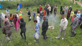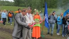 Однако вернемся в день торжества. Праздник начался с традиционного хакасского обряда зажжения огня, вокруг которого трижды прошли участники. Затем они повязали на освященную веками в понятии предков березу ленточки – чалома. В действие вступили артисты районного управления культуры, молодежной политики и спорта. Их литературно – музыкальная композиция на мотивы национального фольклора как нельзя лучше вписалась в горный склон и июльское разноцветье. И чудесно прозвучала на этом фоне хакасская песня в исполнении Татьяны Шиголаковой. Конечно, не обошлось без угощения айраном. И главный торжественный момент. Под флагом «Единой России» глава района Сергей Зайцев и директор археологического парка Сергей Егоркин разрезали красную ленточку. Начались приветственные речи и вручение подарков. Несколько изделий из камня и кости, тысячелетнюю чашу с пестиком для изготовления минеральной краски из личной коллекции «оторвал от души» Владимир Дмитриев. Сотрудница туристической фирмы «Вершина – тур» Любовь Махнева подарила схему маршрутов массива Тогыз – ас и рисунок, к сожалению, почти исчезнувшего в Тохзасском гроте наскального орхоно – енисейского письма от предка Агдам – Ынала потомкам. А глава Ефремкинского сельсовета Сергей Евдокимов не замедлил пригласить гостей на концерт фольклорного ансамбля «Звонница», который совсем недавно стал лауреатом межрегионального конкурса народного творчества. И было чаепитие, и несколько экскурсий по Тропе предков. Работа началась сразу же.  Открытие музея под открытым небом можно считать удачным. И все же впереди обширный круг проблем. Как минимум семь – восемь памятников древнейшей истории и природы должны попасть в сферу охраны окружающей среды и развития инфраструктуры современного экологического туризма. Уже на следующий год должно начаться обустройство территории на не менее уникальном захоронении - Туимском кромлехе окуневской археологической культуры середины третьего тысячелетия до новой эры. Василий ИВАНЧЕНКО