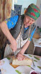 Можно бы написать, что супруги всю сознательную жизнь отдали животноводству. Доказательством могут служить 49 лет стажа у Захара Александровича и 36 – у Степаниды Ивановны. И все же это односторонний вывод. Пусть с утра до вечера надо было спешить на ферму, только были и другие дела и хлопоты. Дом и обязательное крестьянское хозяйство, без которого в деревне не проживешь. И как вычеркнуть первые шаги и слова пятерых детей, их огорчения и радости в школе, их взросление и появление семей. Дети ни в чем не подвели родителей и на старости лет подарили им девять внуков и четверых правнуков. А это настоящее счастье, ведь род Поросеновых продолжается. Нашу компанию из Шира – автора, председателя райсовета ветеранов В.В. Порхуна и фронтовика М.А. Усенко – хозяева встретили вполне радушно и гостеприимно, а тем для беседы в таких случаях находится немало. О том, например, как трудно стало жить без воды, и пришлось пробурить скважину на усадьбе. О льготной компенсации на дрова, в которой нет отказов. Или о той же нехватке времени: «Нечего валяться, то одно дело по хозяйству, то другое. Дом свой, он заботы требует». Тем временем Степанида Ивановна то шкафчик, то холодильник откроет – и вдруг стол накрыт нехитрой снедью – помидоры, варенье, по-хакасски чай с молоком. -Хлеб у вас в Хызыл аале дорогой? – чуть не хором спрашиваем. -Да мы его не покупаем, - звучит в ответ. -Это как? - А свой печём, долго ли умеючи. Он еще вкусней магазинного выходит. Что-то я и не помню, когда покупала, - говорит хозяйка и нарезает толстые ломти от каравая. - Вы к столу подвигайтесь поближе. Вот так и живут Поросеновы. Все у них свое – большая жизнь за плечами, дом с огородом, свои дети и внуки с правнуками. И свой хлеб с солью. Василий ИВАНЧЕНКО Фото автора