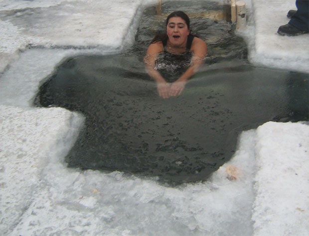Вот и 19 января сам Бог велел провести Крещение Господне в этом живописном месте. Уже к полуночи первые энтузиасты стали собираться к подготовленной проруби в форме креста, набирали воду, а самые отважные купались. На следующий день было официальное шествие к Иордани и ее освящение отцом Владимиром из Шира. На морозном воздухе торжественно и одухотворенно звучали молитвы верующих. Температура за минус тридцать градусов не испугала несколько человек, которые посчитали для себя обязательным долгом искупаться и очиститься от грехов. И почти все собравшиеся набрали освященной воды, чтобы хранить ее до следующего Крещения.
