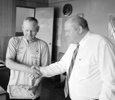 Час прибытия ранний для города, но слишком поздний для села, застать на месте рабочих невозможно. Приходиться ждать виновников торжества, а заодно и нашего приезда – Василия Георгиевича Афанасьева и Владимира Ефимовича Чикалина. А пока можно поговорить с директором предприятия «Джирим – Агро» Павлом Валерьевичем Томчик, человеком открытым, компетентным о видах на урожай, о планах. – Пришли, – докладывает секретарь. В кабинет директора входит небольшая группа. Редко случается, чтобы меня охватила тревога, в то утро она посетила душу. А где Афанасьев и Чикалин? Среди вошедших нет ни одного наряженного, одетого по торжественному случаю мужчины. – Приказ N 113–н Министерства сельского хозяйства Российской Федерации, – зачитывает заместитель главы района Владимир Глущаков, – за многолетний добросовестный труд в системе агропромышленного комплекса наградить Почетной грамотой мастера стройцеха ООО «Джирим–Агро» Василия Георгиевича Афанасьева (на фото).