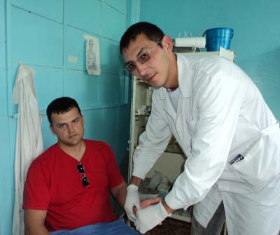 В последнее воскресенье июля погода выдалась умеренной. Жизнь в четыре часа дня в неотложной «Скорой помощи» шла своим чередом. В это время фельдшер Сергей Храмогин отвечал на телефонный звонок: ребенок перегрелся на солнце, что делать. Попробуем отследить события одного дня. – В медицине трудно прогнозировать, что будет и как, – восемь – девять вызовов за 12 часов, бывает и 16–18. Вызовы могут начаться в любой момент и не прекращаться. А может быть тишина, как вот сейчас, но такое не часто. Утро началось с бронхиальной астмы, приступ. Приехали, оказали помощь, в госпитализации пациент не нуждался. Далее – гипертония, высокое давление. Случаются ложные вызовы. Рутинная работа: освидетельствование, и не одно за смену, на состояние алкогольного опьянения, медосмотр «автобусников» перед рейсом, человек девять в день. Приходят амбулаторные больные на уколы. Курс антибиотиков не прервешь, но плановые инъекции – дополнительная нагрузка для «неотложки». Обращаются укушенные. Недавно зашивали ладонь мальчику, пытался отнять еду у пса. Зафиксированы укусы змей в районе Сундуков, Беле, Туса. – Прошел слух о змеях на Орловке… – К нам не обращались. Хотя удивляться нечему. Появились же раки в озере. Где–то видели пауков типа тарантулов. – Затем на вызов к гипертонику. Потом онкологический больной, вновь гипертония. И тут обычную картину нарушает ДТП: женщины отделались легко, ребенок с переломами госпитализирован. Много вызовов кареты «Скорой помощи» связано с пьяными разборками, отравлениями, суицидами. Все последствия драки достаются врачам. Медпомощь обязаны оказать независимо от состояния пациента, даже если он проявляет агрессию. – Отдыхающие пациенты тоже, видимо, не подарок? – Как нас грузят «отдыхайки»? Они не дают скучать. Свежий воздух для иных как дурман. Особенно отличается 24 регион. Томичи, новосибирцы пореже. Кемеровцы тоже. Но красноярцы – это что-то. Наш разговор был прерван. Из санаторного лагеря привезли мальчика, неловко упавшего с лестницы. В службе «Скорой помощи» летом две фельдшерские бригады: выездная и в приемном покое. В экстренных случаях выезжают или принимают пациентов совместно. Фельдшер приемного покоя Александр Кочергин, обследовав больного, вызвал рентген–лаборанта. Подозрение на перелом не подтвердилось. Была наложена гипсовая лангета. Через полчаса сделали снимок уже следующей пациентке. На озере Шира девушка каталась на «плюшке». В больницу попала с переломом левого плеча. Наложили гипс и отправили для дальнейших оперативных действий по месту жительства. Как–то быстро в приемном покое стало многолюдно. Диспетчер Татьяна Сорокина убирала процедурный кабинет. Дежурный врач Наталья Морозова проводила освидетельствование участников ДТП. Работник ГИБДД что–то протоколировал. Соседям – боградцам такое не снилось В выходные с ачинской и красноярской трассы к нам направляется непрерывный транспортный поток. В это время у дорожной милиции и в больнице (порой по два–три ДТП с пострадавшими) начинается авральная работа. Очереди в приемном покое, как в советское время в магазине за колбасой. По статистике, за июнь – 300 обращений амбулаторных больных, 270 человек госпитализировано (23 иногородних), за июль (до 20 числа) – 270 обращений, 202 (48 иногородних) определены в стационар. Ночные экстренные вызовы, дежу
