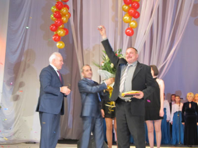 В момент вручения Диплома I степени и денежного приза в сумме 50000 рублей за победу среди сельхозпредприятий министр Иван Вагнер поздравил генерального директора ООО «Джирим – Агро» Павла Томчика с рождением внука. И это вызвало дополнительную овацию. Джиримцы в нынешнем цикле произвели 8383,1 тонны зерна с урожайностью 33,5 центнера с гектара, засыпали 1534 тонны семян с помощью введенного в эксплуатацию зерноочистительного комплекса, провели яровой сев с применением новых технологий на 2505 гектарах, подготовили подготовили под посев будущего года 3524 гектара почвы. Животноводы хозяйства с начала года обеспечили валовое производство молока 1080 тонн (112%), надой на одну корову за девять месяцев – 3274 килограмма, среднесуточные привесы крупного рогатого скота – 685 грамм. Несколько раз пришлось выходить на сцену генеральному директору ООО «Целинное» Владимиру Санникову. Коллективу вручен Диплом II степени и денежный приз в 45000 рублей. В хозяйстве получено 8166 тонн зерна при урожайности с каждого гектара 22,8 центнера, засыпано 1800 тонн семян, яровой сев на площади 3591 гектар проведен с применением нулевой технологии, под посев будущего года подготовлено 1737 гектаров почвы. Не менее впечатляющие результаты у животноводов: среднесуточные привесы - 496 грамм, валовый привес живой массы КРС - 209 тонн, надой на одну корову за 9 месяцев – 3224 килограмма, валовое производство молока – 2579 тонн. От завода «Гомсельмаш» и его представителей в Хакасии ООО «Целинное» за продвижение и обслуживание новой техники вручен денежный приз в сумме 100000 рублей. Впечатляющим был список и выход на сцену ширинских передовиков производства. Среди награжденных министерством сельского хозяйства Виктор Трушин и Леонид Шайкин, Иван Николаев и Василий Пинчук, Андрей Диринг и Сергей Коков, Иван Попов и Сергей Григин и многие – многие другие. Не были забыты в списке награжденных руководители, инженерно – технические работники, профсоюзные активисты. Почетные грамоты и денежные призы были вручены Артуру Гюнтеру и Николаю Руппелю, Сергею Молотилкину и Владимиру Кокову, Виктору Переслегину и Юрию Кулакову, Елене Санжиевой. За демонстрацию достижений производства на ярмарках – выставках и развитие конкуренции на агропродовольственном рынке Хакасии Ширинскому район был вручен Диплом II степени. Перед началом торжества один из самых знаменитых людей нашего района и Хакасии, бывший директор племзавода «Сонский» Александр Васильевич Мамаев пошутил, что приехал в Абакан либо за мотоциклом с коляской в качестве подарка, либо за личным вертолетом. И серьезно добавил: «Приятно, когда не забывают ветеранов производства. Я сегодня увидел многих друзей, которые все силы, наработанный опыт, да и здоровье отдали крестьянскому труду. От души рад этому празднику сельчан». И вот наступил, пожалуй, самый главный момент торжественной церемонии. Лучшим из лучших, комбайнеру из ООО «Джирим – Агро» Владимиру Хулапу и доярке из ООО «Целинное» Людмиле Поросеновой были вручены ключи от «Жигулей». Такого еще ни разу не было, когда автомобили уезжали в один район. И это заслуженно. Попробуй поспорь с ширинцами, когда они третий год подряд по-настоящему жахнули в трудовом соревновании в сельскохозяйственном производстве